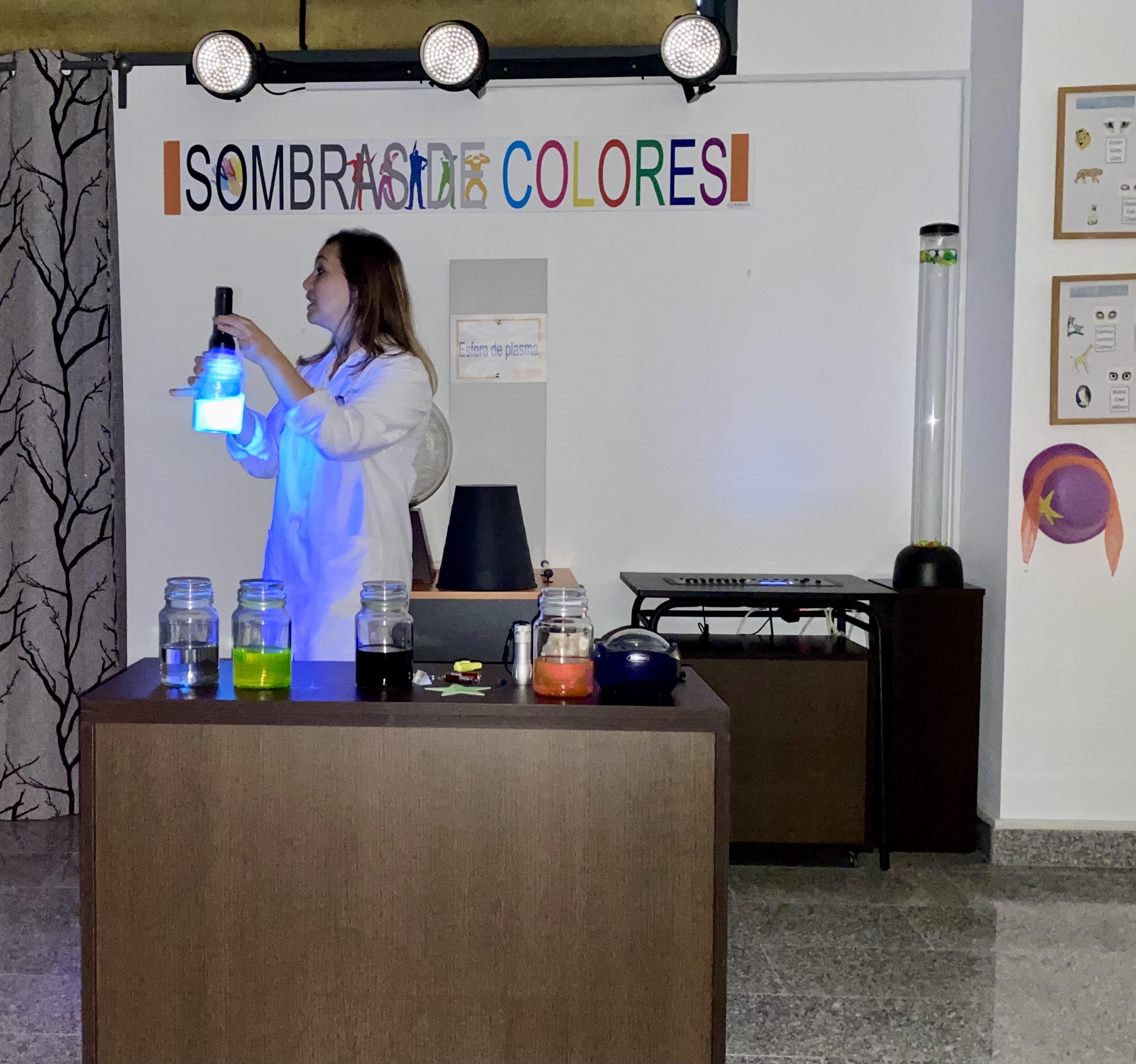 La primera parte de la visita consistía en la explicación y realización de experimentos de Química por parte de la profesora. Hemos observado diferentes reacciones químicas al mezclar diversas sustancias.